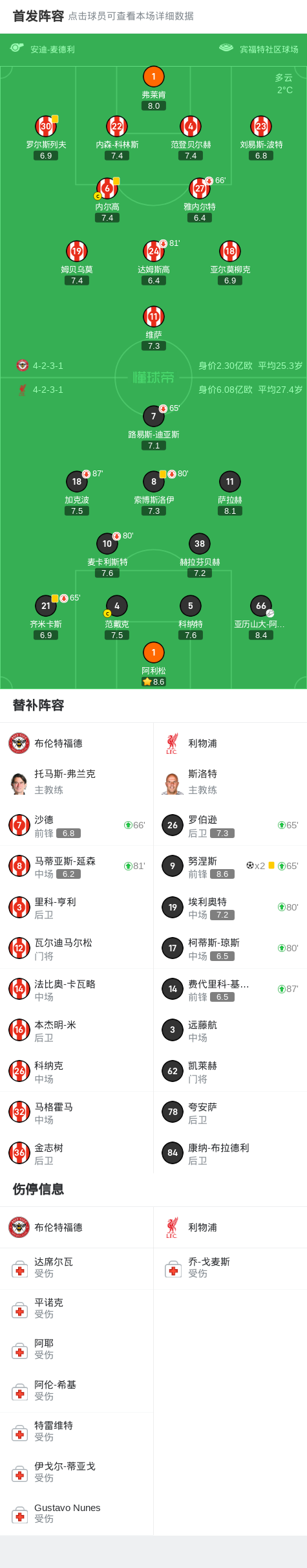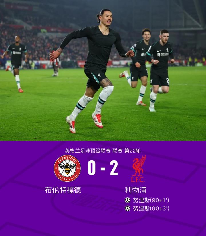 剑南春|利物浦2-0客胜布伦特福德,努涅斯替补梅开二度