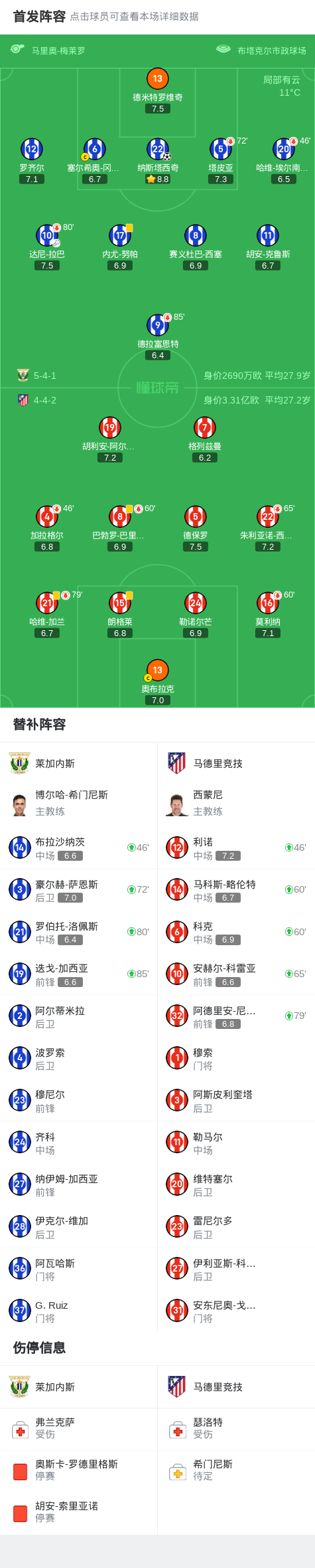 第49分钟,达尼-拉巴开出角球,纳斯塔西奇头球破门,莱加内斯1-0马竞