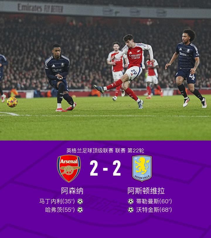 剑南春|阿森纳连丢两球2-2维拉,哈弗茨破门+绝杀无效
