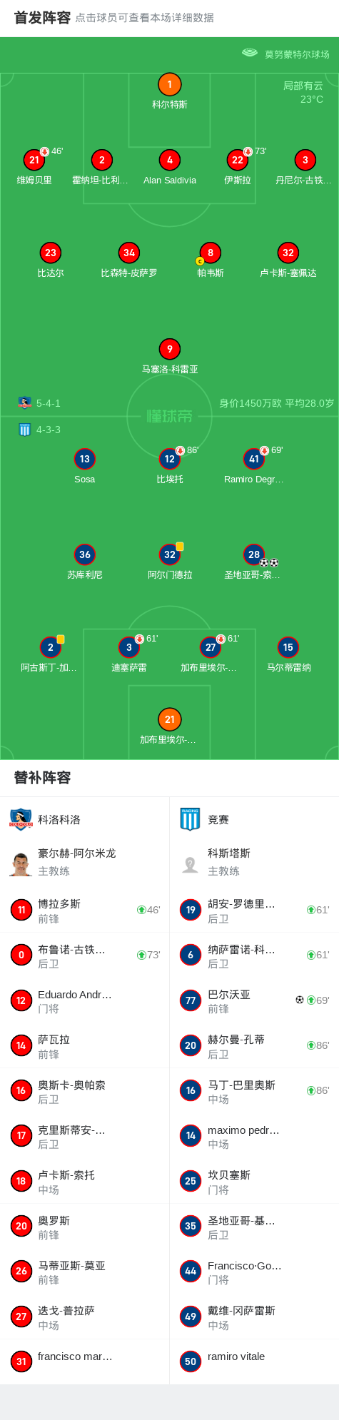竞赛3-0大胜科洛科洛,圣地亚哥-索拉里双响,巴尔沃亚破门