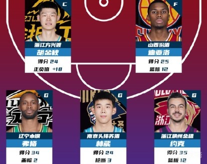 CBA第32轮最佳阵容:胡金秋、迪亚洛、弗格、林葳和约克当选