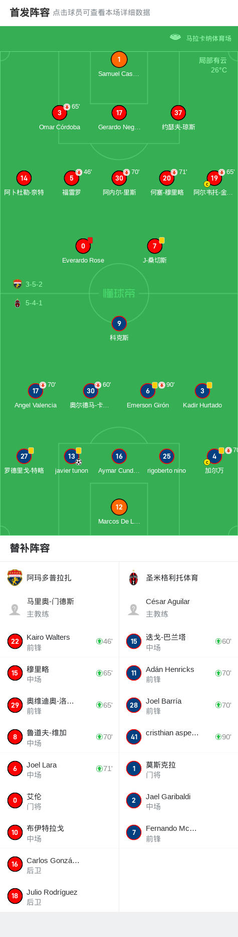 第35分钟,阿玛多普拉扎球队Everardo Rose吃到红牌。