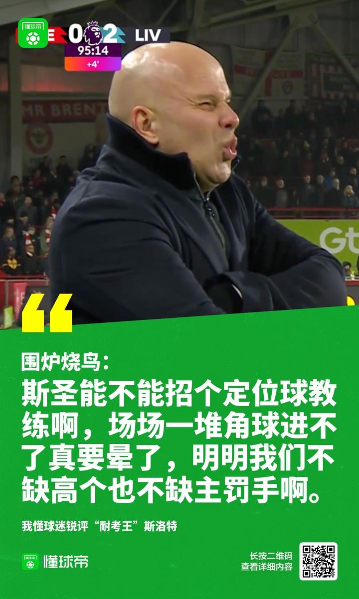 我懂球迷锐评“耐考王”斯洛特,此战再现关键换人,但角球战术有待提升。另:感谢斯圣贡献的新表情包!