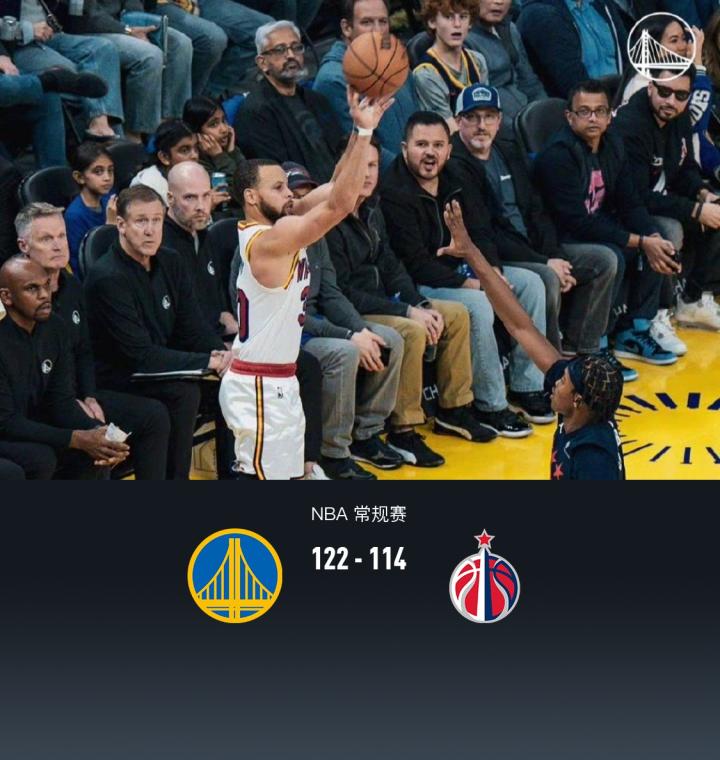 勇士122-114奇才,库里26+5+6,普尔38分,维金斯31+11