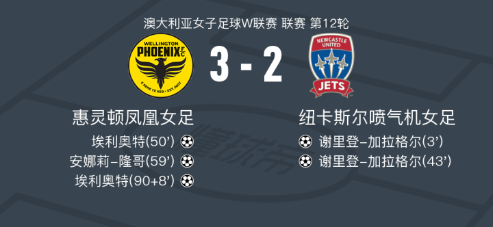 惠灵顿凤凰女足3-2逆转纽卡斯尔喷气机女足,埃利奥特两球,安娜莉-隆哥1传1射