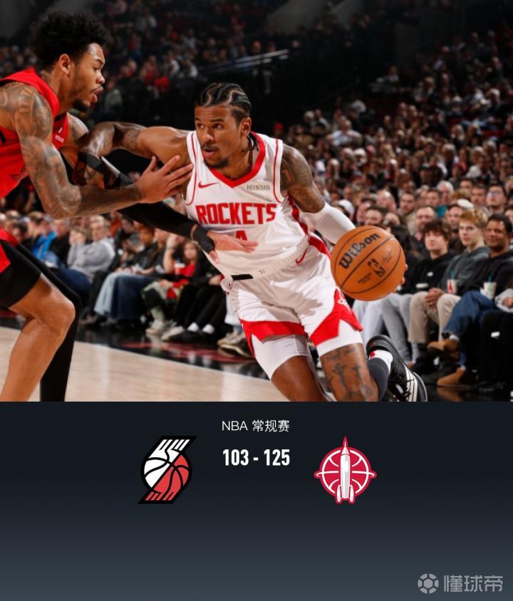 第四节开拓者斯科特-亨德森拿下8分,火箭伊森拿下9分,最终开拓者103-125不敌火箭