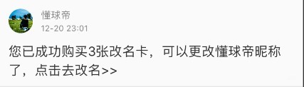 现在,这些用户的愿望可以实现啦!懂球帝已经上线了商城改名卡,购买请点下方的链接: