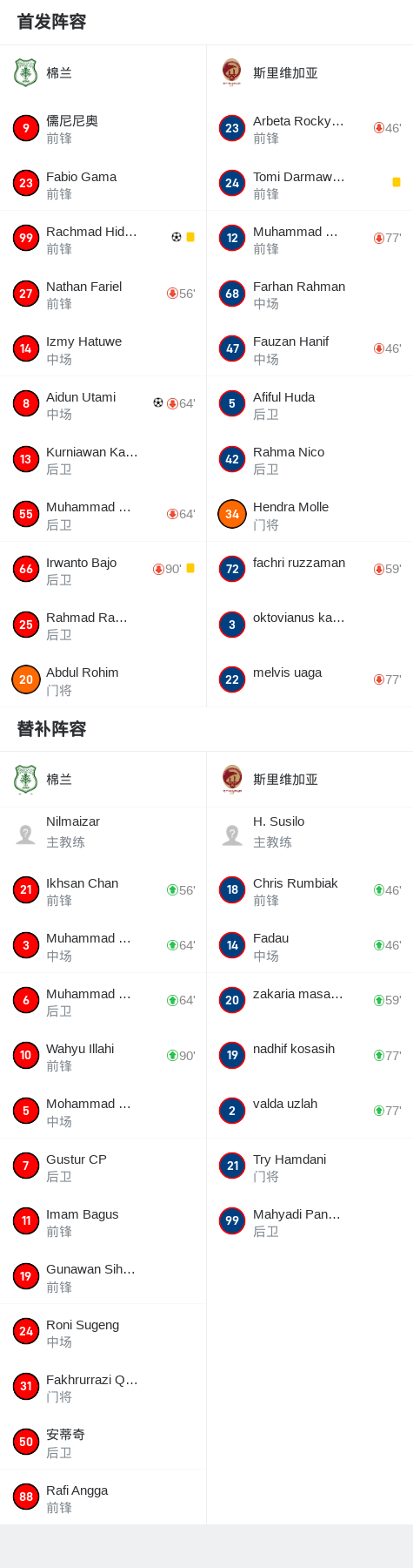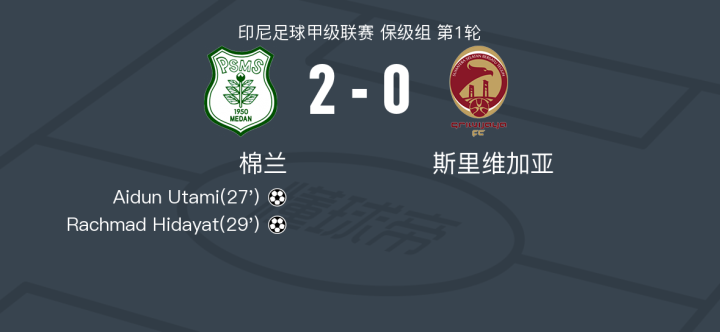 第29分钟,棉兰球员Rachmad Hidayat打入一球。