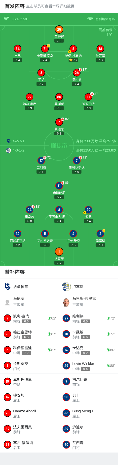 洛桑体育0-0卢塞恩,贝内德错失良机战报bot @懂球帝2025-01-20 01:28在瑞士足球超级联赛第19轮的较量中,洛桑体育坐镇主场迎战卢塞恩。经过激烈的对抗,双方均未能攻破对方球门,比赛以0-0的比分收场。两队在场上展现了顽强的防守和不懈的拼搏精神,尽管创造了一些得分机会,但都未能转化为进球。最终,洛桑体育与卢塞恩各取一分,平分秋色。点击查看本场比赛详细数据>>点击查看瑞士超完整积分榜>> 球队阵容 技术统计 展开更多