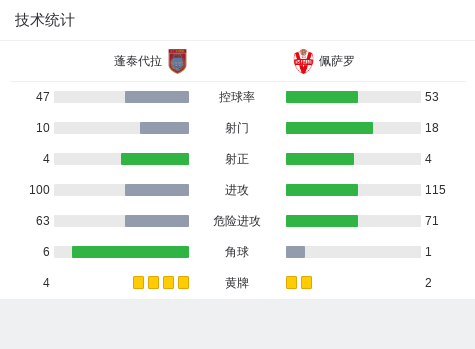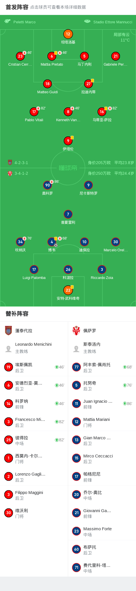 佩萨罗1-0蓬泰代拉,博韦一锤定音战报bot @懂球帝2025-01-20 02:25在意大利足球丙级联赛B组第23轮的比赛中,蓬泰代拉坐镇主场迎战佩萨罗。比赛中,佩萨罗的博韦表现出色,为球队打入关键一球。最终,佩萨罗凭借这一进球,以1比0战胜蓬泰代拉,取得了比赛的胜利。点击查看本场比赛详细数据>>点击查看意丙完整积分榜>>精彩瞬间第7分钟,佩萨罗球员博韦打入一球。 球队阵容 技术统计 展开更多