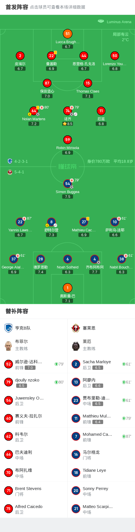 第70分钟,亨克B队球员诺齐助攻Nolan Martens打入一球。