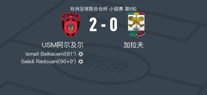 USM阿尔及尔2-0加拉夫,Ismail Belkacemi建功,Saâdi Radouani锁定胜局