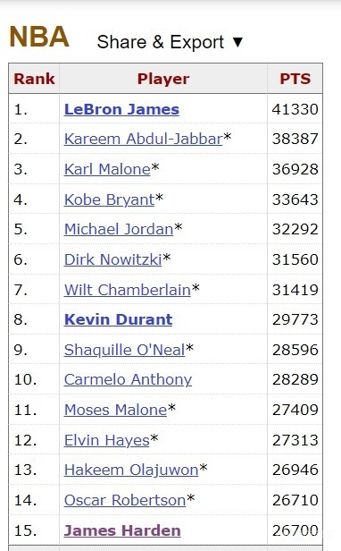 里程碑,哈登总得分超越奥斯卡-罗伯特森升至NBA历史第14位