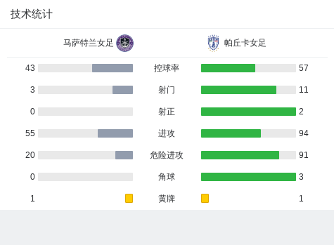 在墨西哥女子超级联赛春季联赛第4轮的较量中,帕丘卡女足客场挑战马萨特兰女足。比赛中,帕丘卡女足展现了出色的进攻实力。科拉尔率先为球队打开局面,随后维拉再下一城,进一步巩固了领先优势。最终,帕丘卡女足以2比0战胜马萨特兰女足,取得了本场比赛的胜利。