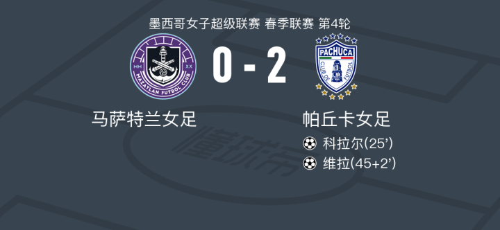 帕丘卡女足2-0马萨特兰女足,科拉尔破门,维拉锁定胜局