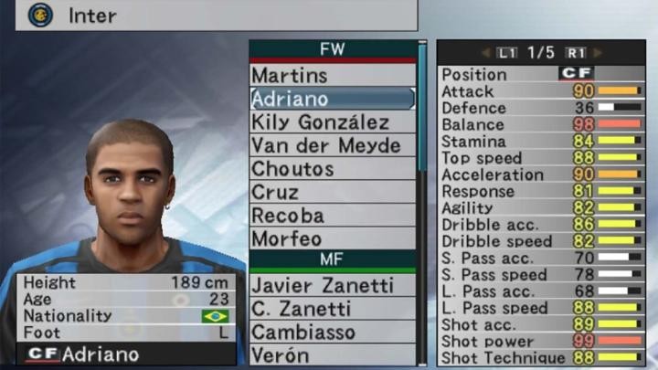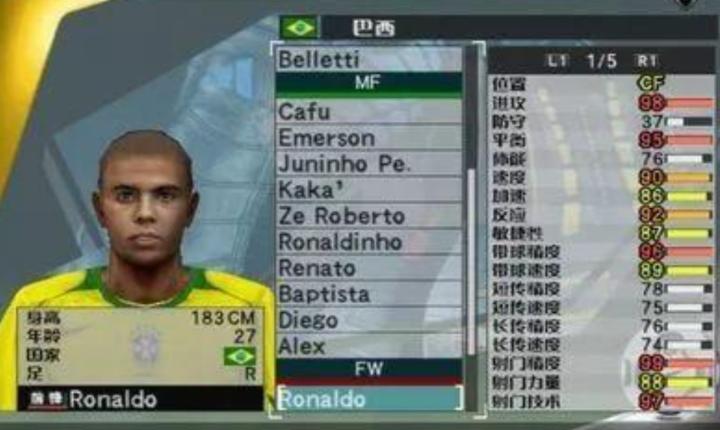 每次进入游戏前,我们都会协商一番,哪些球员过于“imba”(不平衡)就不能使用。比如,那个在早期版本中屡屡支配比赛无所不能的“外星人”罗纳尔多,过人如麻的尼日利亚妖人巴班吉达,中场妖星杰杰-奥科查,或是速度99的怪物马丁斯,当然,还有曾经在《实况8》中过了中圈弧就能无脑按射门的“梅阿查国王”阿德里亚诺。