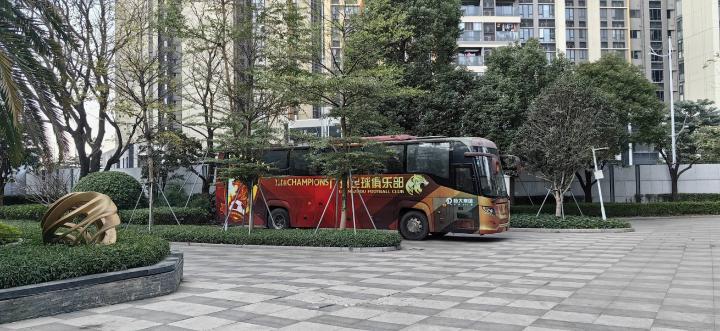 未通过准入后,广州队的大巴车依然停在基地里