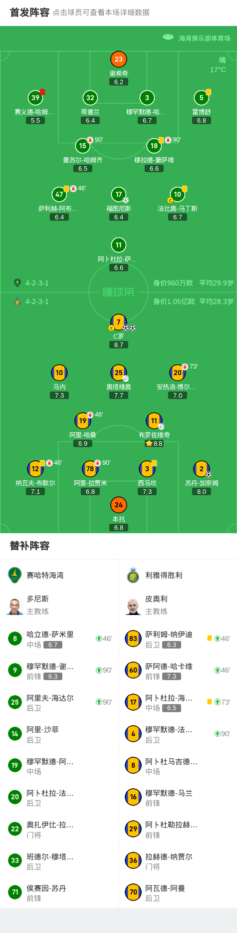 第13分钟,利雅得胜利长传找马内,门将提前出击将球抱住