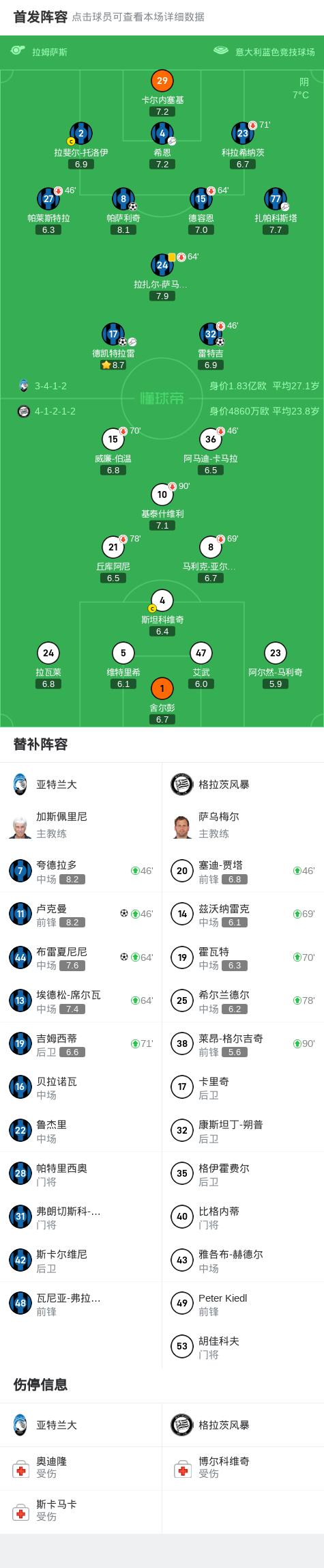 第90分钟,德凯特拉雷传中,卢克曼头球破门,亚特兰大4-0