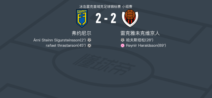 弗约尼尔2-2雷克雅未克维京人,rafael thrastarson1传1射,哈夫斯坦松破门
