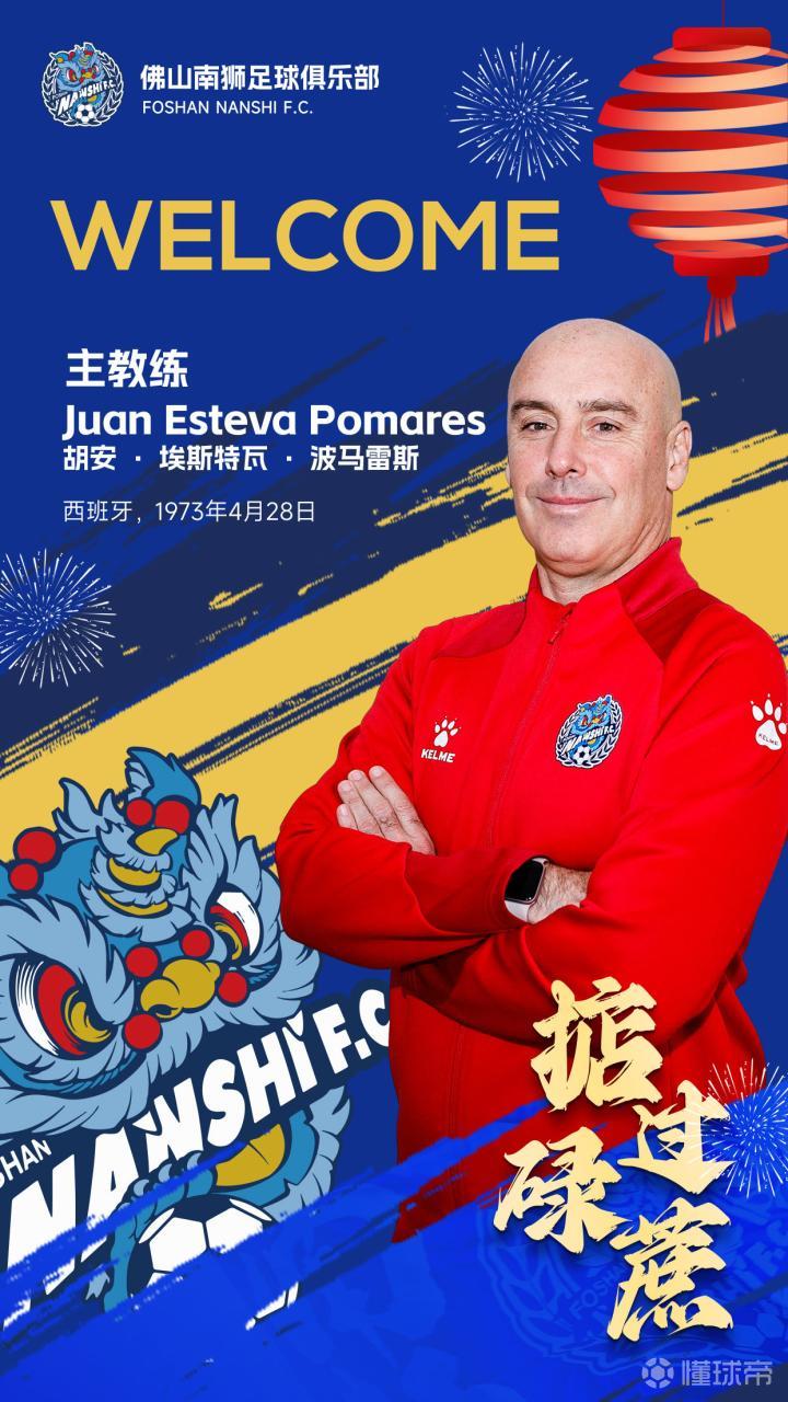 官宣 | 胡安·埃斯特瓦·波马雷斯正式出任佛山南狮足球俱乐部一线队主教练 经与本人协商一致,即日起,胡安·埃斯特瓦·波马雷斯正式出任佛山南狮足球俱乐部一线队主教练。他将带领我们在新的赛季中继续追求卓越,赢下更多绿茵荣耀,向着更高的目标发起冲击! 胡安·埃斯特瓦·波马雷斯,1973年9月24日出生于西班牙,取得欧足联职业级教练证书,拥有丰富的执教经验。在他的职业生涯中,他曾执教过西班牙马翁竞技足球俱乐部、西班牙康斯坦西亚足球俱乐部、西班牙卡斯特利翁足球俱乐部、西班牙欧罗巴足球俱乐部、西班牙菲格雷斯足球俱乐部、菲律宾联城足球俱乐部、香港晋峰足球会等多家俱乐部。 佛山南狮足球俱乐部热烈欢迎胡安教练的到来,我们相信,他的到来将为佛山南狮足球俱乐部注入新的活力和动力,进一步提升我们球队的整体实力和竞技水平,推动球队向更高的荣誉发起冲击。在新的征程上,让我们并肩作战,共享胜利的喜悦,共创佛山南狮的璀璨未来!
