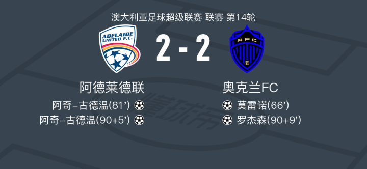 阿德莱德联2-2奥克兰FC,莫雷诺破门,罗杰森救主