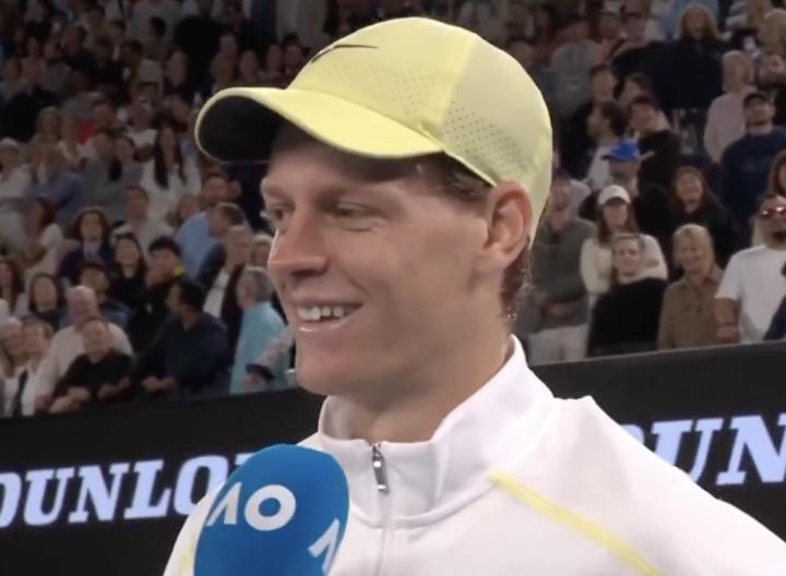 北京时间1月22日,澳网最后一场1/4决赛,卫冕冠军辛纳直落三盘淘汰本土选手8号种子德米纳尔,晋级四强。赛后,他被现场主持人问到是否看了昨晚德约科维奇3-1逆转阿尔卡拉斯的比赛。