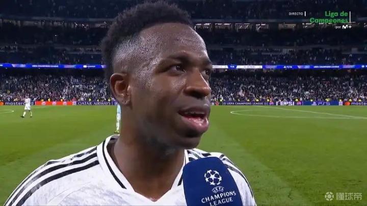 以梅开二度帮助球队在欧冠主场5-1大胜萨尔茨堡后,维尼修斯当选全场最佳,赛后他接受了Movistar+的采访。