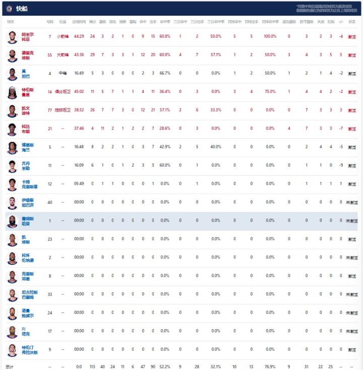 洛杉矶快船德里克-琼斯29分7板3助,凯文-波特26分7板7助,科费24分3板2助;