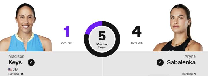 1月23日,澳网女单半决赛全部结束,头号种子萨巴伦卡击败11号种子巴多萨,19号种子凯斯逆转击败2号种子斯瓦泰克。26岁的萨巴伦卡将与29岁的凯斯争夺冠军。此前,双方有过5次交手,萨巴伦卡4胜1负占据优势。