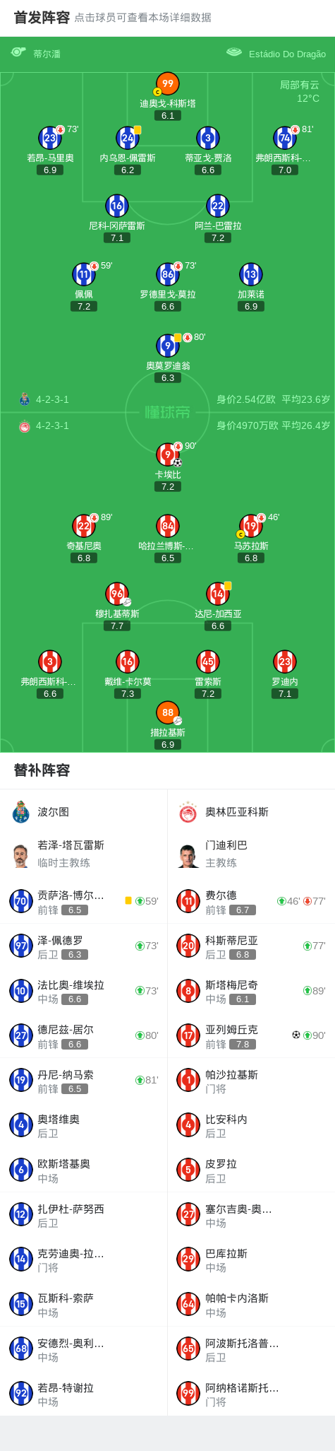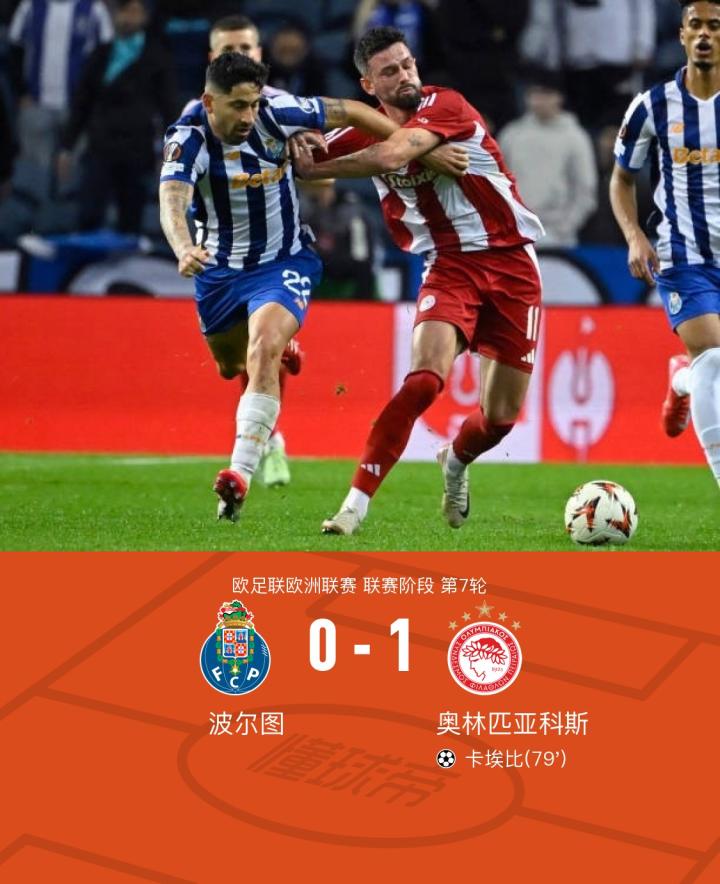 波尔图0-1奥林匹亚科斯遭遇4连败,卡埃比一剑封喉