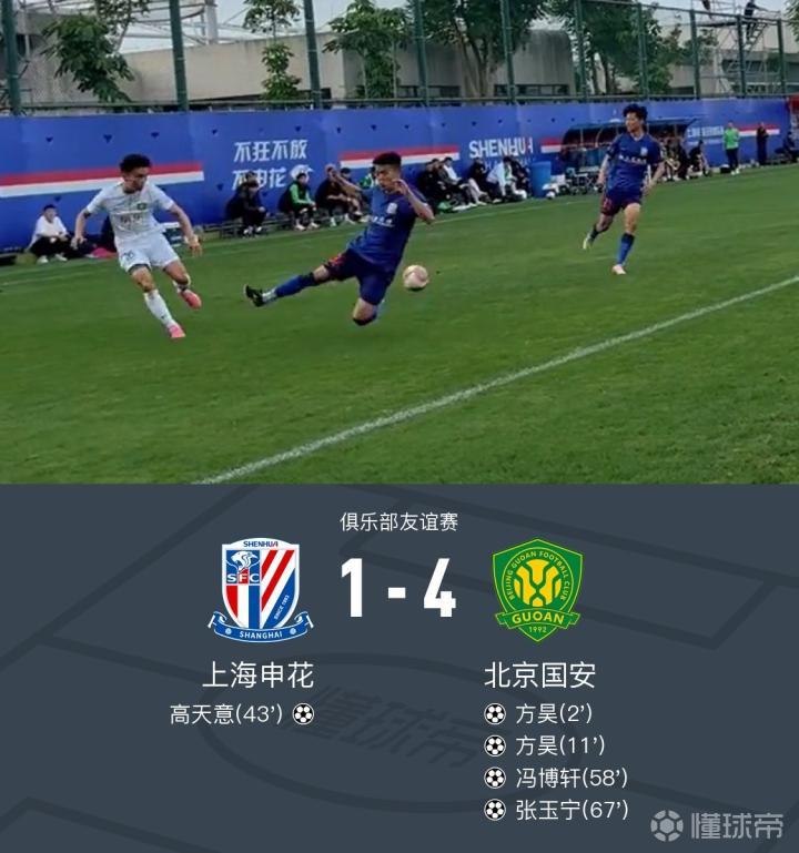 热身赛国安4-1申花,方昊双响,张玉宁、高天意、冯博轩破门