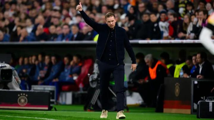 纳格尔斯曼2023年9月成为德国队主教练,迄今为止他执教的19场比赛中,德国队11胜5平3负。在2024德国欧洲杯上,纳格尔斯曼带领德国进入8强,但1/4决赛不敌最后的冠军西班牙遗憾出局。