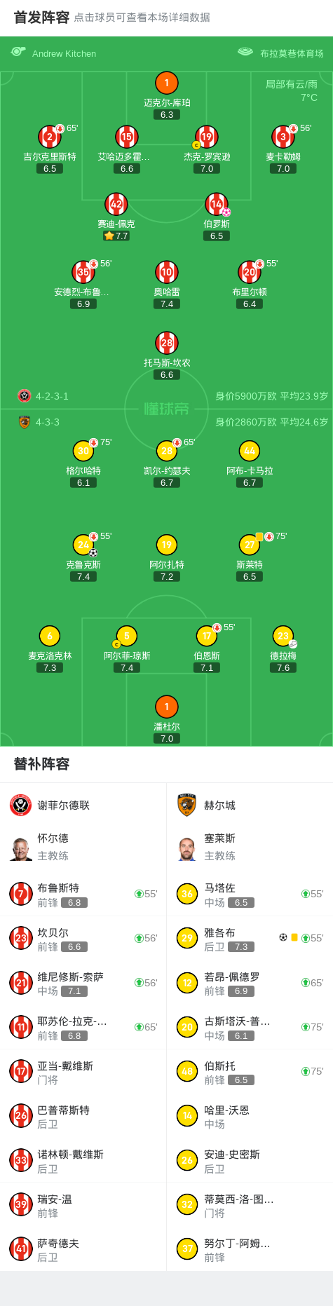 在英格兰足球冠军联赛第29轮的比赛中,谢菲尔德联坐镇主场迎战赫尔城。比赛中,赫尔城的克鲁克斯率先为球队取得领先。随后,德拉梅为雅各布送出助攻,雅各布成功将球送入对方球门,进一步扩大了赫尔城的优势。比赛接近尾声时,谢菲尔德联的伯罗斯不慎自摆乌龙,为赫尔城再添一分。最终,谢菲尔德联以0-3不敌赫尔城。