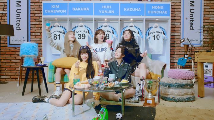 视频一开始,许允真身着湖人复古出场服手持篮球出现在镜头前,当中村一叶问许允真最喜欢的球员是谁时,允真羞涩一笑随即表示勒布朗是自己最喜欢的球星,随后允真便将篮球传给身着湖人23号球衣的队长金采源,并亲切的称呼她为“采源布朗”(ChaeBron),在接到球后,“采源布朗”顺势来了一记“暴扣”,随后众人一起模仿詹姆斯的庆祝动作并且转圈圈,场面十分温馨可爱,可谓是“桃花一簇开无主,可爱深红爱浅红”。