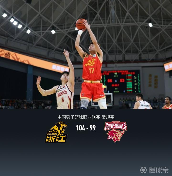 浙江德比,广厦104-99稠州豪取12连胜,胡金秋21+11,余嘉豪17+9