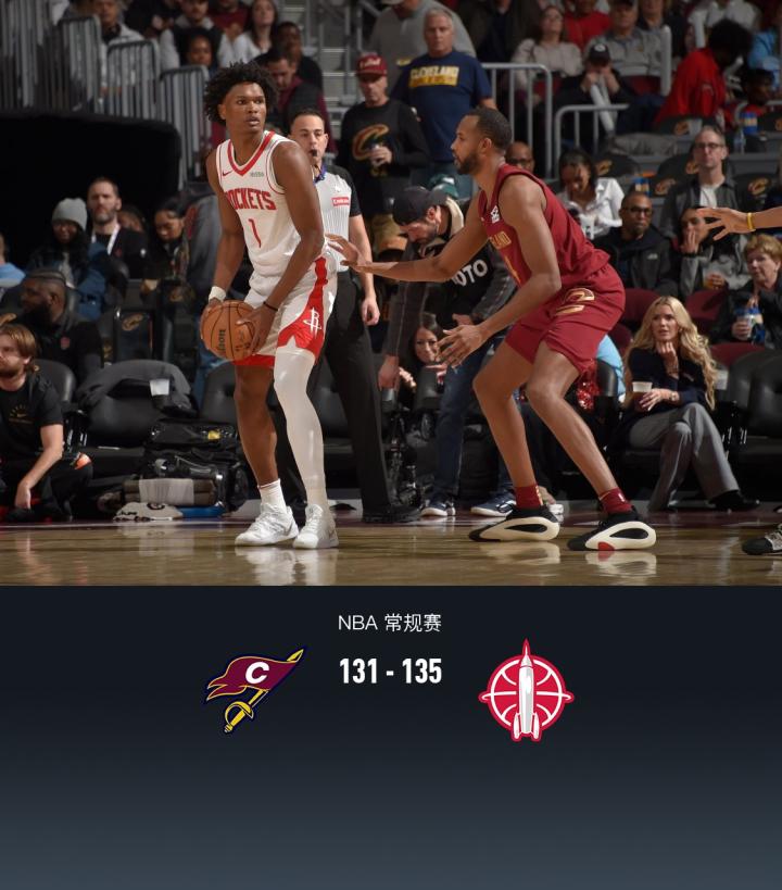 第四节骑士达里厄斯-加兰拿下14分,火箭阿门-汤普森拿下14分,最终骑士131-135不敌火箭