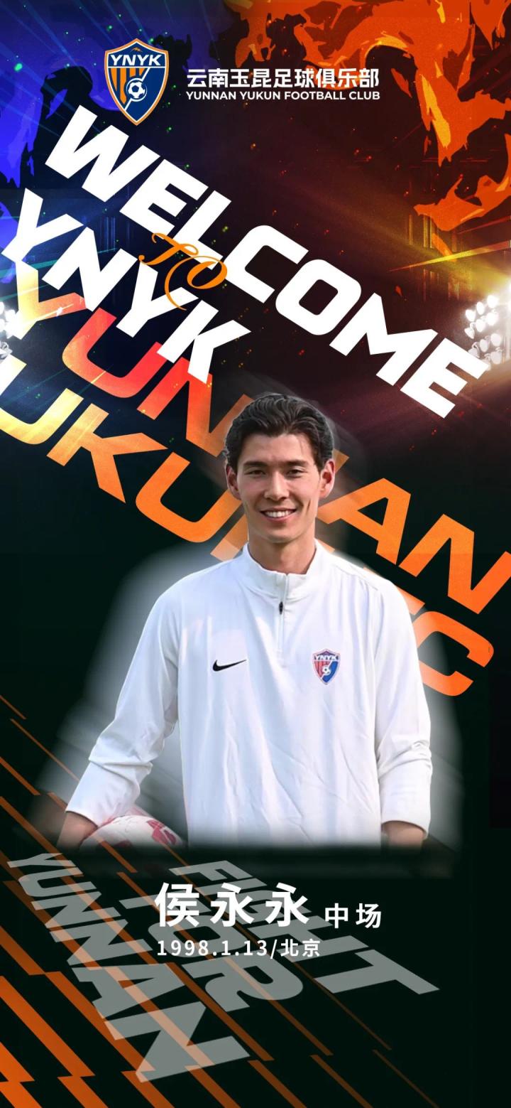 北京时间1月26日晚间,云南玉昆官方宣布归化国脚侯永永加盟球队。