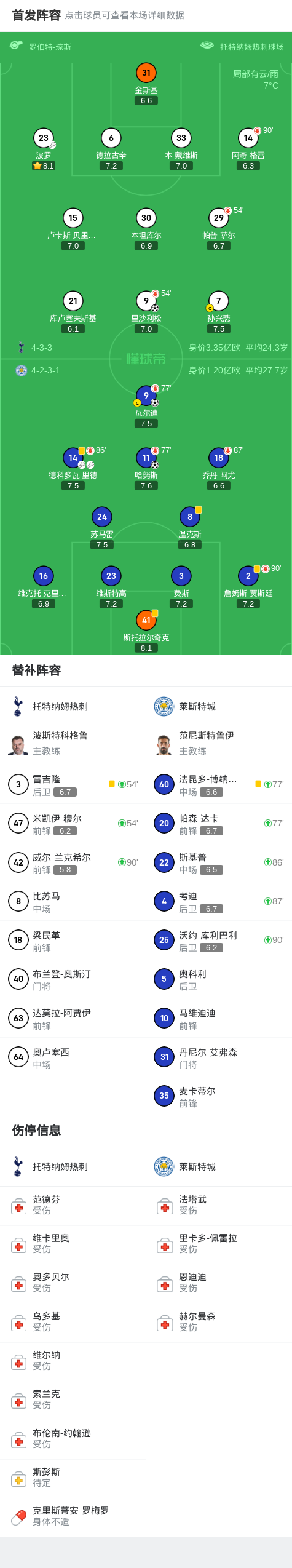 剑南春 | 热刺1-2遭莱斯特城逆转,瓦尔迪、哈努斯建功