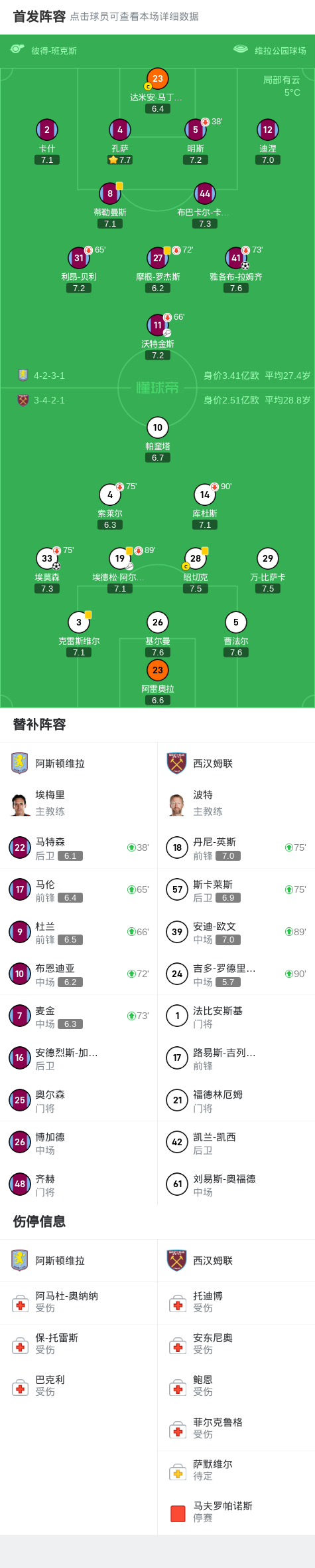 阿斯顿维拉1-1西汉姆联,拉姆齐破门,埃莫森建功