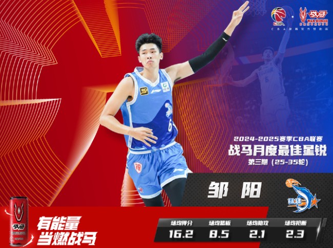 CBA官方:福建男篮邹阳荣获第3期月度最佳星锐球员南京伦敦体育场小杨 @懂球帝2025-01-27 15:24北京时间1月27日,CBA官方宣布,福建男篮球员邹阳荣获2024-2025赛季战马第3期月度最佳星锐球员。在常规赛25-35轮的比赛中,邹阳首发出战全部11场比赛,帮助球队拿下其中4场胜利,在他场均41.5分钟的出场时间内,可以得到16.2分、8.5篮板、2.1助攻、2.3抢断和0.5盖帽的全面数据,场均投篮命中率43.2%,罚球命中率77.4%。展开更多
