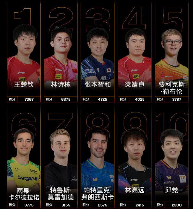 国际乒联最新世界排名:男子梁靖崑升至第4;女子钱天一重返前十
