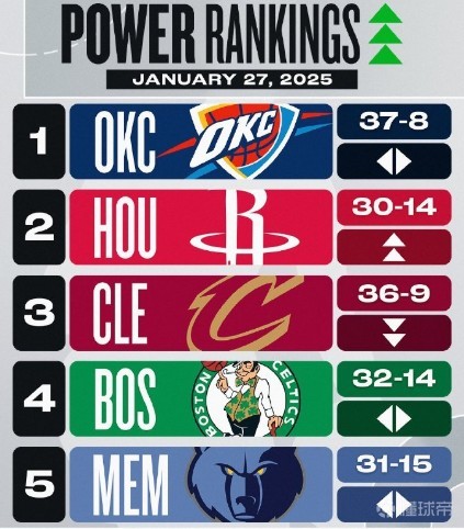 NBA最新实力榜:雷霆位列榜首,火箭反超骑士升至次席,勇士落至19