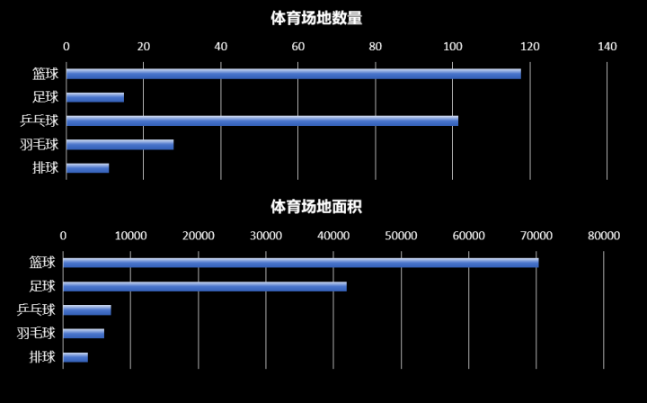 第三盘,我们来比一比体育场地的建设,这个度量衡由体育总局根据国家统计局批准发布。从场地数量上,中国乒乓球似乎更有优势;但一乘以面积,乒乓球还是输了。