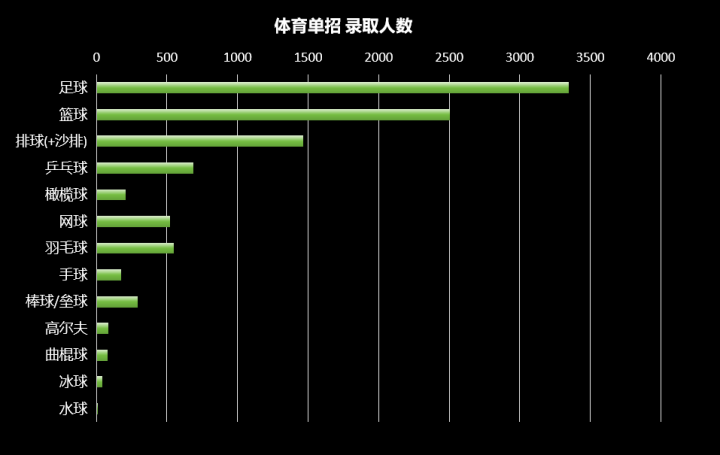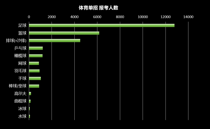 第四盘,体教结合。体教结合方面最重要的度量衡,自然就是教育局发布的体育单招,因为体育单招决定了那些上不了顶尖职业的运动员,他们的退路能有多宽。在体育单招中,中国足球无论是报考人数还是录取人数,都位于所有球类项目的首位,远远高于中国乒乓球。这一盘,足球赢得更没有悬念。