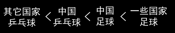 但是,如果我们把中国乒乓球放在足球的度量衡下,它还会排在中国足球前面吗?
