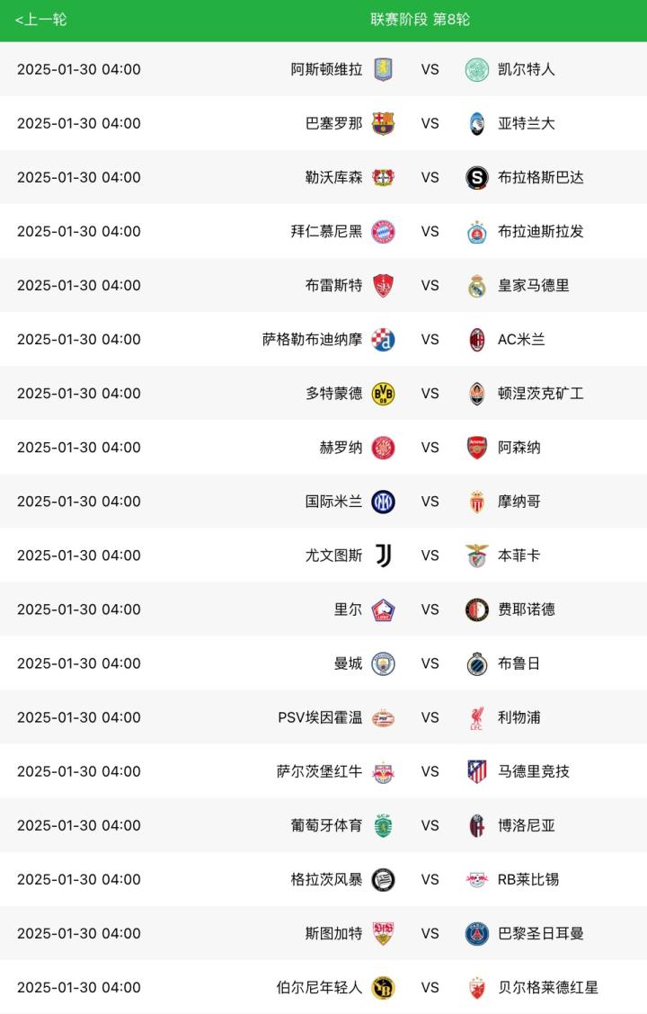 北京时间1月30日凌晨4点,2024-25赛季欧冠联赛阶段将上演终极重头戏,18场欧冠同时开战,哪6支球队能随利物浦、巴萨一起直通欧冠十六强?哪16支球队将进入淘汰赛附加赛的混战?蓝月亮曼城能否虎口脱险?所有的悬念将在18场比赛结束后,也就是大年初二的清晨同时揭晓!