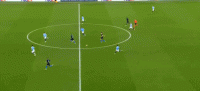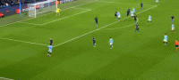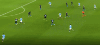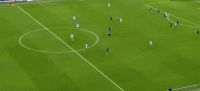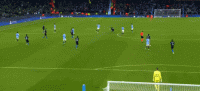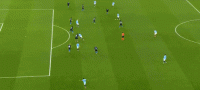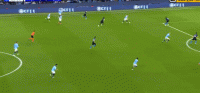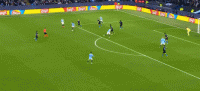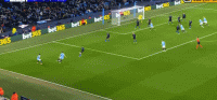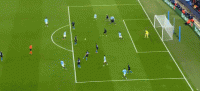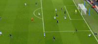 第47分钟,德布劳内传中,斯通斯头球顶偏