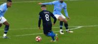 第12分钟,京多安禁区内接球时倒地,主裁判没有判罚