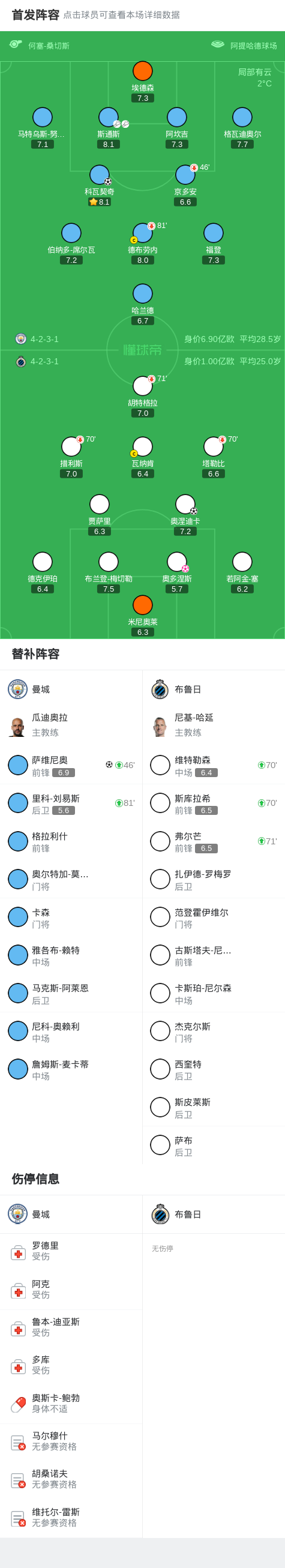 第77分钟,斯通斯助攻萨维尼奥破门,曼城3-1布鲁日